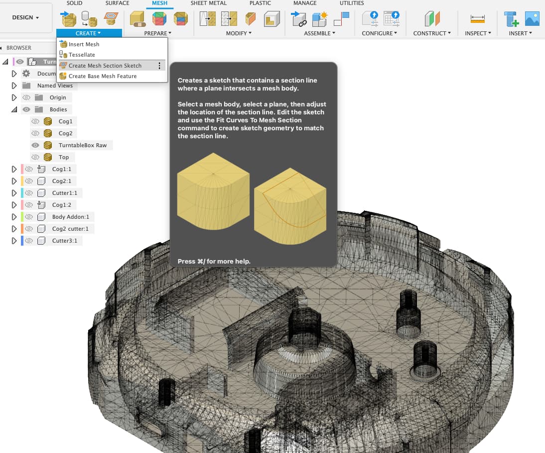 - Creating sketches off of meshes - using ‘Create mesh sketch’ - from the mesh workspace