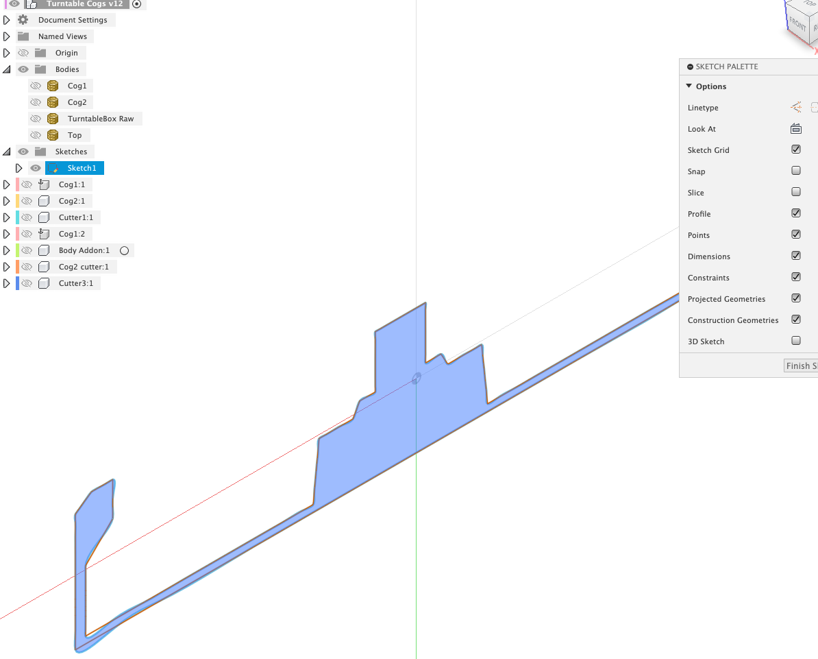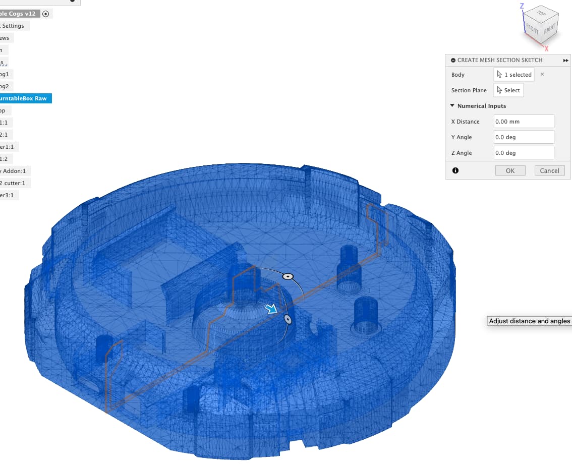 So moved into Fusion. But rather than trying to edit the mesh - I instead just imported it, and then created new sketches off of it - to create new normal Fusion parts for the cogs, plus other parts for the cutters / modifiers to be used back in Bambu Studio for the actual cutting / adding - using mesh boolean.