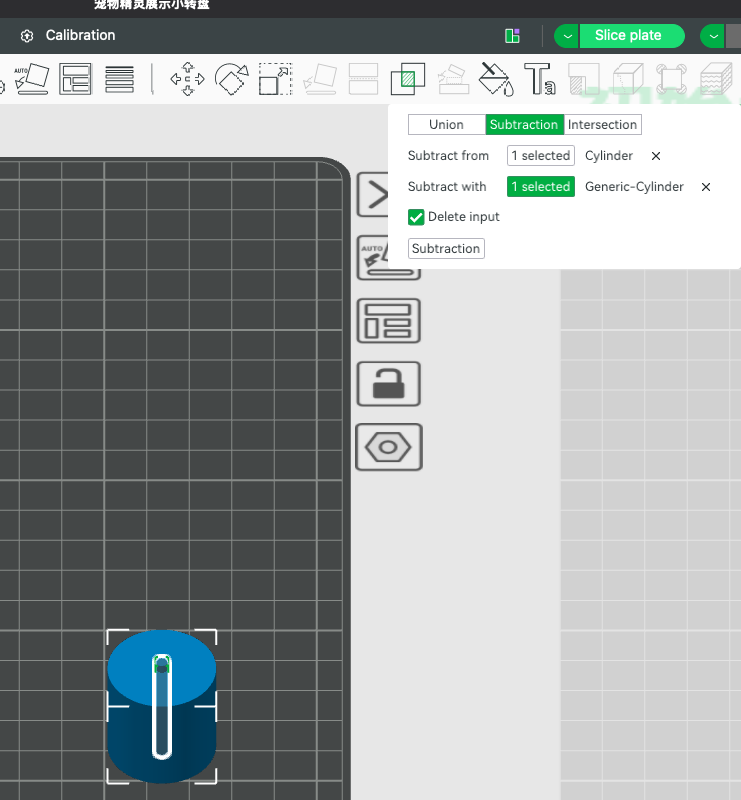 Making the posts thinner so that they would go through the bearings was a bit more difficult. I eventually settled on creating a cutter shape using two cylinder primatives ‘mesh boolean subtracted’ together - to give me a hollow cylinder, then mesh boolean to remove most of the existing posts.