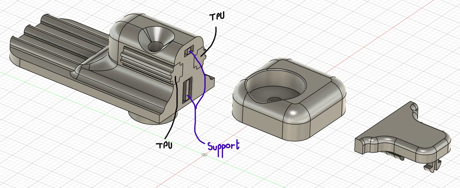 - I’d love to print it with a 2mm nozzle because its so small, but I guess 4mm is needed to facilitate the TPU grips.