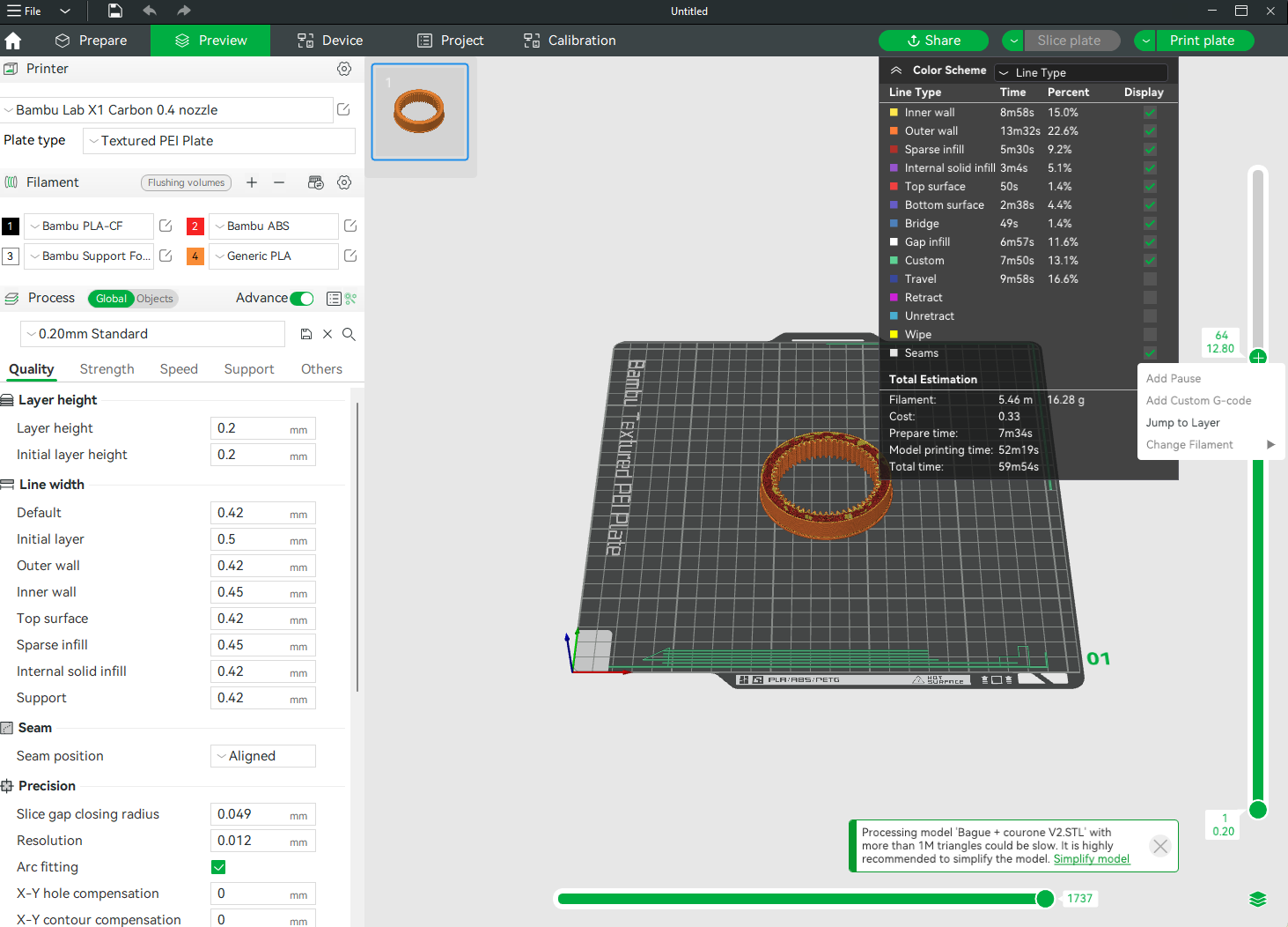 - I used the layer bar and the change filament option, FAILED (greyed out)