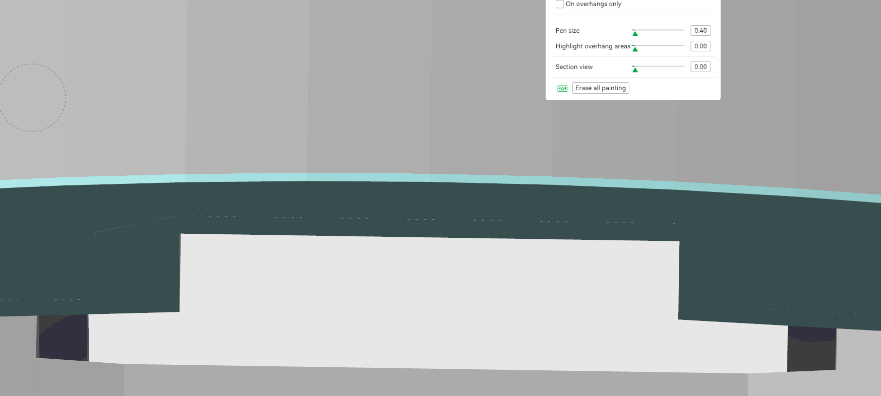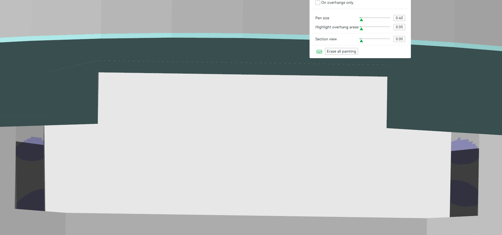 I’m trying to print an object with a significant overhang, which definitely needs support. The problem is, Bambu Studio doesn’t seem to handle these prints well. I can only paint supports when the entire object is selected, and there’s no X-ray view to help me see inside.