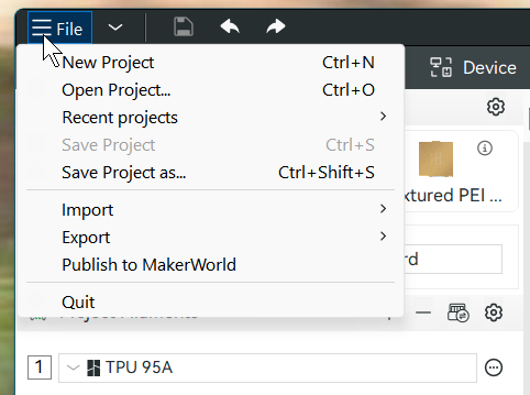 Once you have setup your build plate/s, either go File>Save Project or click Ctrl+S (CMD+S on Mac) to save the project as a 3mf file. This is what you upload to Makerworld.