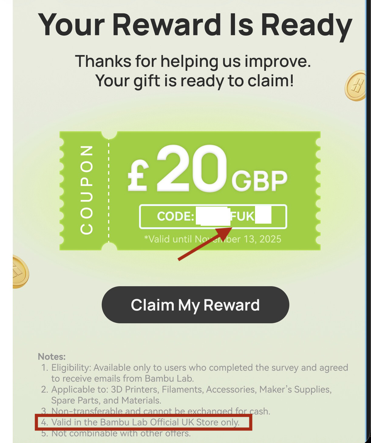 In the fine print of the email… Also I think bambu were trying to send me a message with the code.