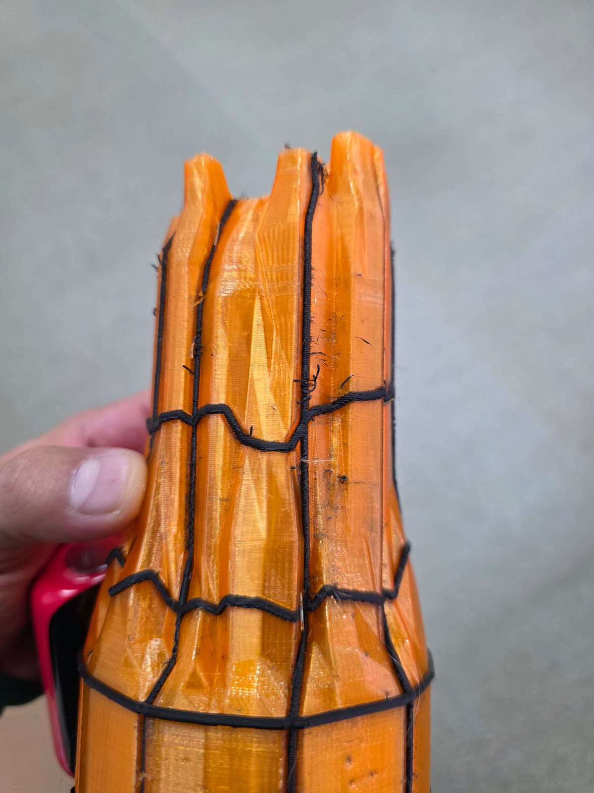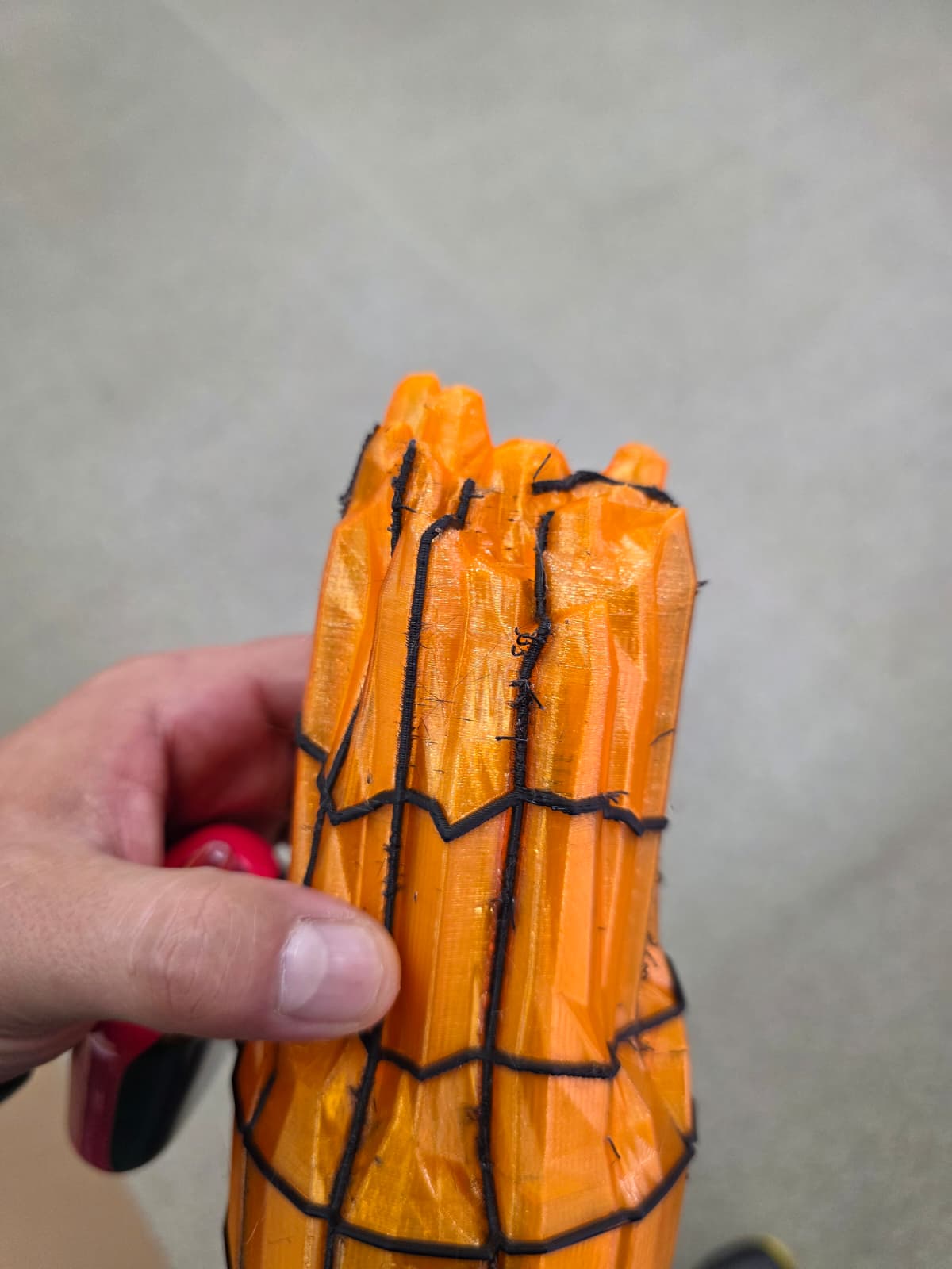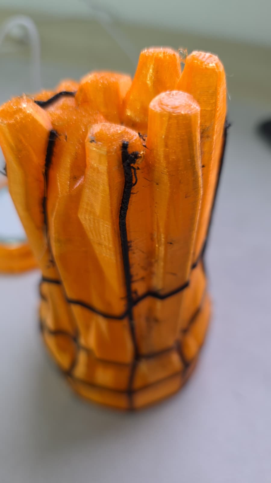 But now, I have to print something in translucent PETG and the only other PETG in black that I have is PETG-HF. See below. The filaments should be pretty dry, I am running the dryer for another 12 hours today and will give it another shot tomorrow but this is a longer print and can get expensive, so I am looking for some expert advice as to what is causing this to happen. When I got the print out this morning one of the hotends had some stringing on the nozzle, not sure if that caused it.