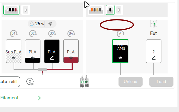 Not sure when it changed but both AMS & AMS 2 Pro would show %Humidity. Now the OG AMD shows a scale of A to E but the AMS 2 Prow shows %Humidity. It changed some time a week ago or so. I can no longer compare humidity between the 2 AMS. The OG AMS now has a letter value and not a percentage number like it used to. I would also compare the Humidity% to the humidity in the room. Now that the OG AMS has a letter grade and not a %Humidity, That can not be done. I have no idea why they replaced the %Humidity with a letter grade on the OG AMS. Other announce, Why not let me see/show both my AMS in the window? I do not have or use an external spool and have no need to see the empty external spool that will never be used. So let my place my 2nd AMS in the location held by the non existent external spool.